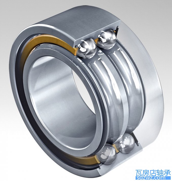 角接觸球軸承內外圈的滾道可以在水平軸線上有相對位移。因此可承受聯合負荷-即同時作用的徑向和軸向負荷。角接觸球軸承的軸向承載能力隨著接觸角的增加而提高。接觸角的定義為,在徑向平面上.鋼球和滾道接觸點的連線與軸承的垂直軸線所成的角度。負荷時沿著鋼球和滾道接觸點的連線從一個滾道傳遞到另一個滾道。