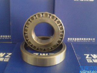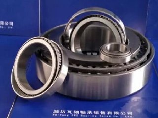 圓錐滾子軸承的內、外圈具有錐形滾道,滾道之間裝有錐形滾子。若將錐形面延伸,最終會聚于軸承軸線上一點。圓錐滾子軸承主要用于承受以徑向載荷為主的徑向,軸向聯合載荷。軸承的軸向承載能力由接觸角決定,越大,軸向承載能力越大.圓錐滾子軸承為分離型軸承,帶滾子和保持架的內圈構成內組件,能與外圈分開安裝。 該類軸承主要用途:汽車前輪、后輪、變速器、差速器、小齒輪軸,機床主軸,建筑機械,大型農業機械,鐵路車輛齒輪減速裝置,軋鋼機輥頸小減速裝置。