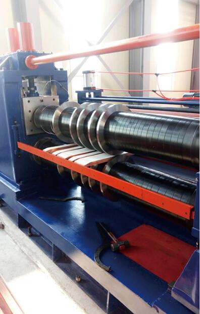 本設(shè)備的工作流程:本設(shè)備是將鋼板(各種金屬材料卷)通過(guò)高速精密縱剪加工成需要寬度的專用剪切設(shè)備。本設(shè)備的主要工作主機(jī)由開(kāi)卷機(jī)、精密圓盤(pán)式刀座、張力產(chǎn)生站、收卷機(jī)等四個(gè)主要機(jī)構(gòu)構(gòu)成,中間輔以收紙、運(yùn)料、夾送、板頭剪床、緩沖、引導(dǎo)、覆膜、收卷廢邊、分卷剪床、出料等裝置。